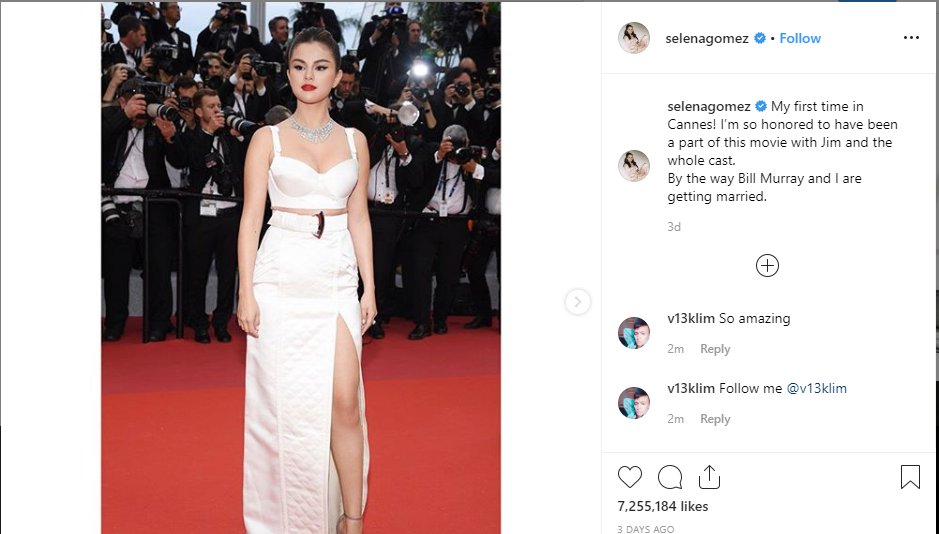 यद्यपी, सेलेनाको मुर्रेसँग विवाह गर्ने भन्दै ठट्टा मात्र गरेकाे बताइएके छ ।