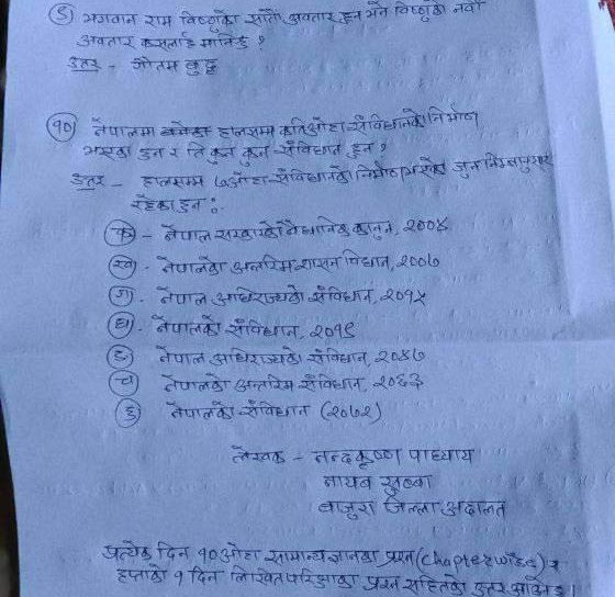 जान्नैपर्ने लाेकसेवा सम्बन्धी, प्रश्न सहितकाे उत्तर (सामान्य ज्ञान)