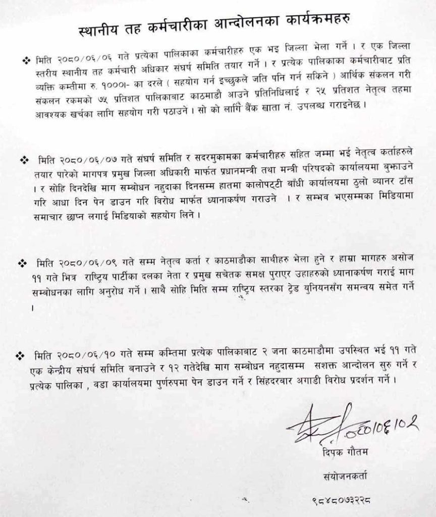 हेर्नुहोस् स्थानीय तह कर्मचारीका आन्दोलनको कार्यक्रम