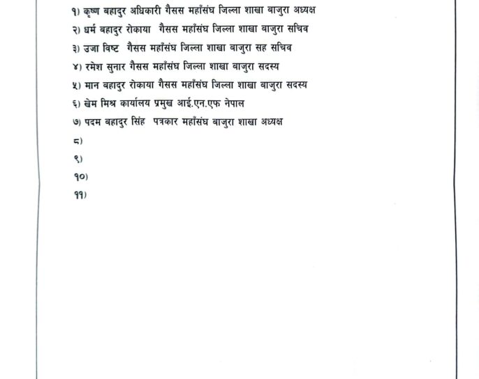• बाजुराका नागरिक संघ–संस्थाद्धारा प्रमुख जिल्ला अधिकारी मार्फत कानुनी सुधारको माग सहित सरकारलाई आधार पत्र